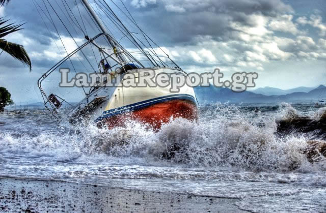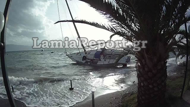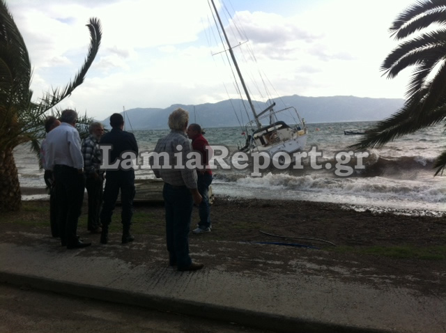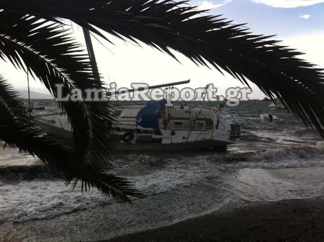 Οι ισχυροί νοτιάδες φούσκωσαν τη θάλασσα, που πλημμύρισε παραλιακά καταστήματα και δρόμους, ενώ στις Ράχες ο καιρός έκοψε τα σχοινιά από το remezzo του ιστιοπλοϊκού, που βλέπετε στις φωτογραφίες του Lamiareport και το έβγαλε στην παραλία.
