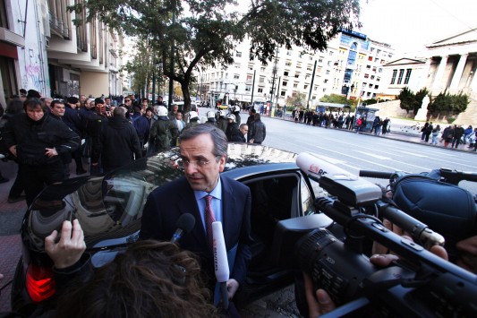 περίμενε τον πρωθυπουργό, Αντώνη Σαμαρά, έξω από το Γενικό Λογιστήριο του