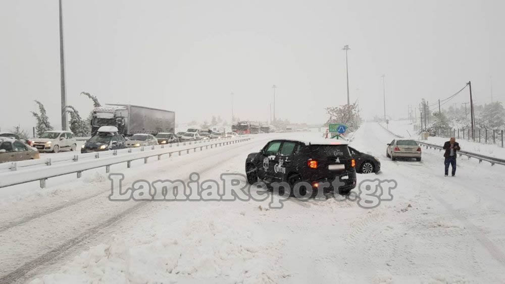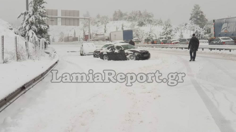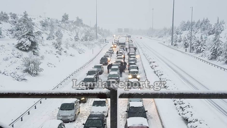 Εγκλωβισμένοι στο χιονιά - Ουρές χιλιομέτρων στην εθνική οδό Αθηνών-Λαμίας. ΦΩΤΟ & VIDEO