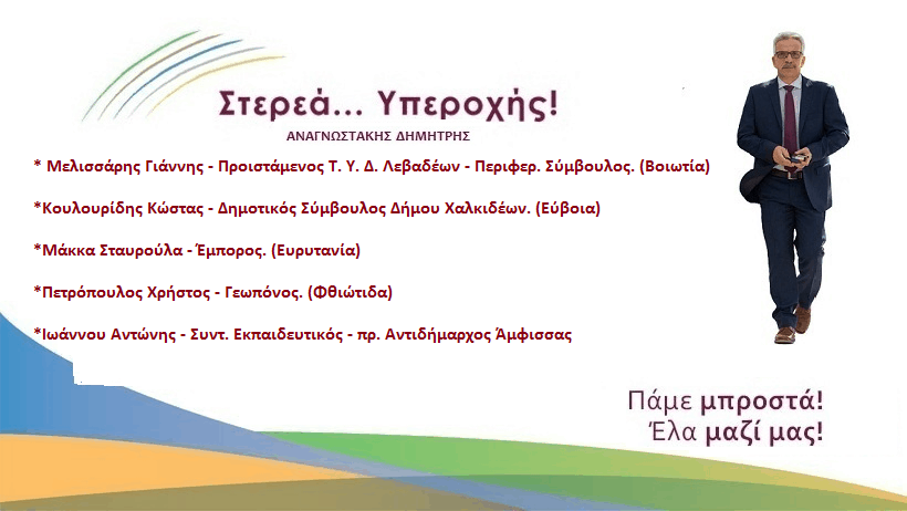 Υπό την ηγεσία του Δημήτρη Αναγνωστάκη, που κι αυτός είναι άριστος γνώστης του χώρου της αυτοδιοίκησης ως πρώην Δήμαρχος Χαλκίδας, στοχεύουμε σε μια αισθητή αναβάθμιση των υπηρεσιών της περιφέρειας προς τους πολίτες με ταυτόχρονη ανάληψη περισσότερων και πιο στοχευμένων πρωτοβουλιών από τις περιφερειακές ενότητες. Είμαι ιδιαίτερα αισιόδοξος για την τελική έκβαση του εγχειρήματός μας»!