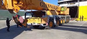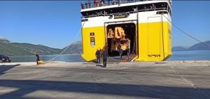 Είχε προηγηθεί η φόρτωση και η αναχώρηση του άλλου πλοίου με τις νταλίκες και τους γερανούς που θα μετέφεραν τις ανεμογεννήτριες στο τόπο εγκατάστασής τους.