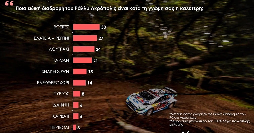 Το 80% των συμμετεχόντων στην έρευνα απάντησε πως γνωρίζει ότι θα πραγματοποιηθεί και φέτος το Ράλλυ Ακρόπολις με την εκκίνηση να δίνεται στον Ιερό Βράχο της Ακρόπολης.