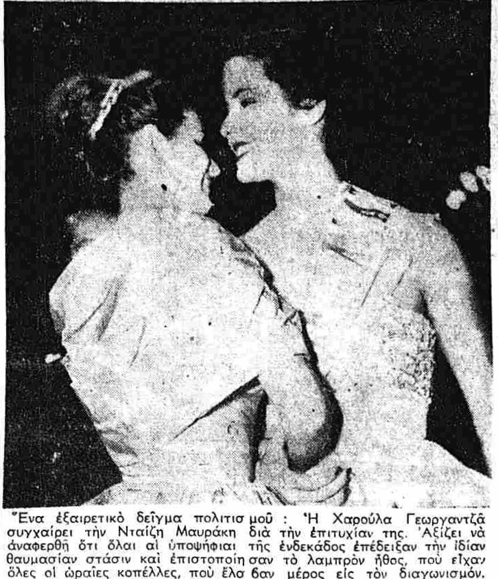 Αυτό που κυριαρχούσε ήταν «να βγει η δική μας κοπέλα». Οι κρητικοί ήθελαν τη Ντέζη Μαυράκη από τα Χανιά, οι Θεσσαλοί την Χαρούλα Γεωργανζά από το Βόλο, οι Πειραιώτες τη Βιργινία Πετιμεζάκη και πάει λέγοντας…