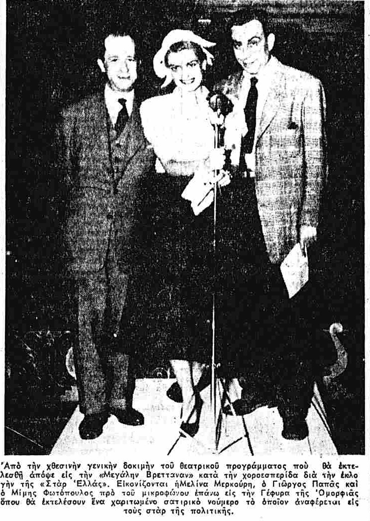 Κι ακόμη κανείς δεν μπορεί να φανταστεί ότι την παρουσίαση θα την έκανε η Μελίνα Μερκούρη με τον Μίμη Φωτόπουλο, η θα τραγουδούςσε η Σοφία Βέμπο!