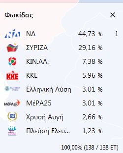 ΕΘΝΙΚΕΣ ΕΚΛΟΓΕΣ 2019: ΣΤΑΥΡΟΔΟΣΙΑ – ΠΟΣΟΣΤΑ ΣΤΗΝ ΦΩΚΙΔΑ