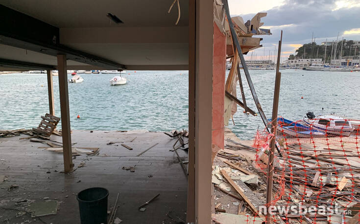 Μπουλντόζες έχουν αρχίσει να ξηλώνουν τις αυθαίρετες πέργκολες των καταστημάτων προκειμένου να δημιουργηθεί πεζόδρομος δίπλα στη θάλασσα
